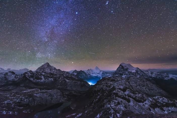 (众多徒步者扎营的新果牛场以及星轨)