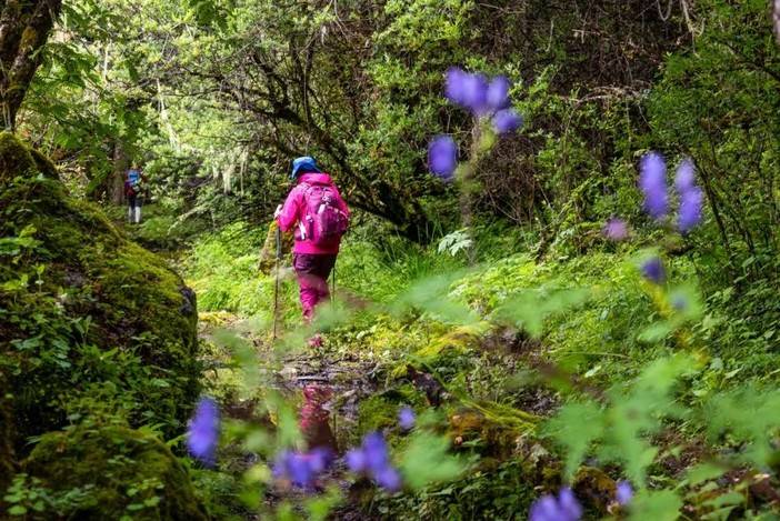 最佳徒步时间的话,一个是5月底6月初的杜鹃花期,可以欣赏沿途好几处杜鹃花海。另一个是十月中下旬,可以看漫山遍野的彩林。而且这两个时间段的雨雪概率相对较低,看到雪山的概率也比较高一些。