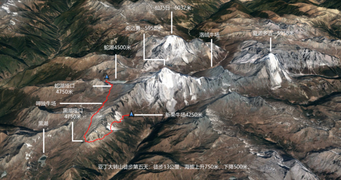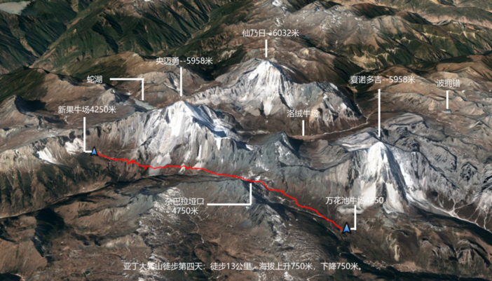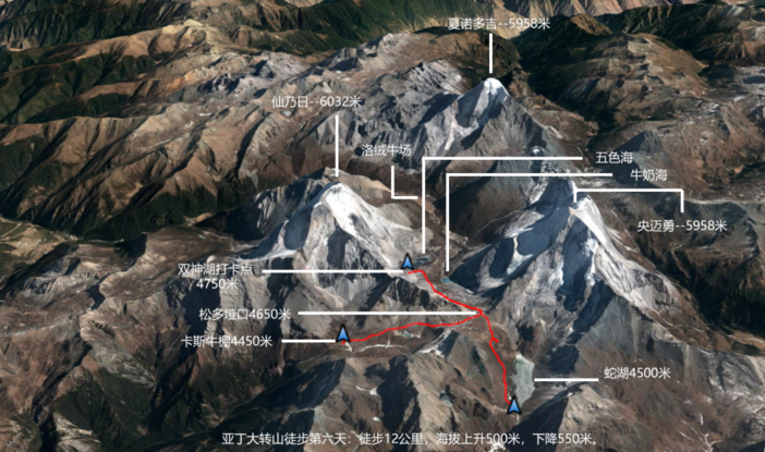 其中松多垭口要翻越2次,另有一个4400米的小垭口未在地图中标明。