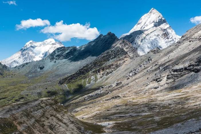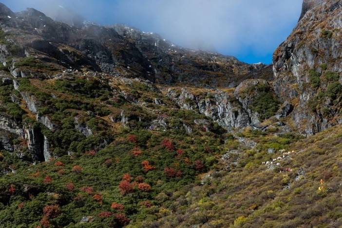 新果牛场的日出不错,穿过整个新果牛场,我们将开始长长的长坡。本日我们将穿越危险最大的碎石滑坡区,体能或经验较差的徒步者最好在向导陪伴下通行。