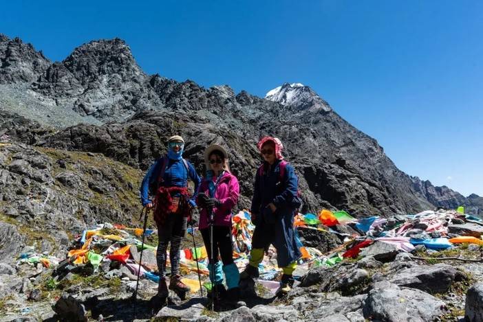 (徒步者在杂巴拉垭口留影,背后为夏诺多吉)