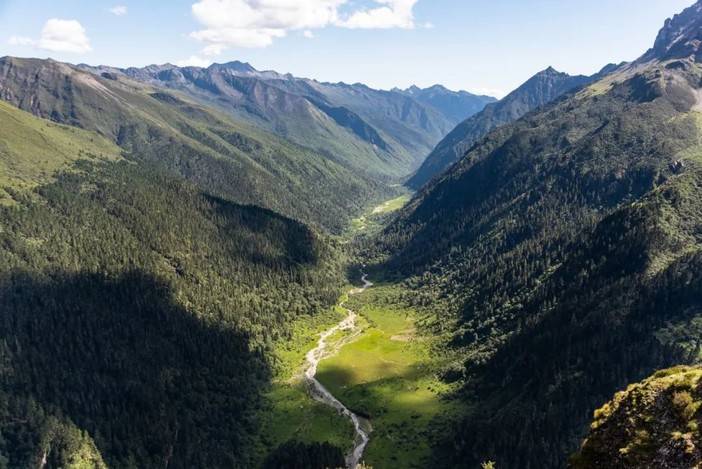 (央迈勇西侧山谷道路平坦易行)