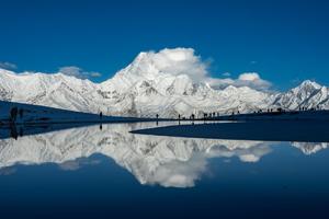 作为贡嘎西坡高山海子的代表,冷嘎错不仅可以欣赏贡嘎雪山群的倒影,日落时分更可以欣赏日照金山的绝美光影,夏季盛开的野花和偶尔蔓延成海的云海让这里成为贡嘎山域最著名的徒步圣地。