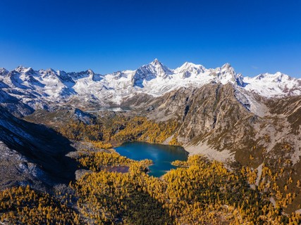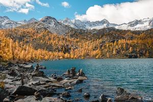 海拔4100米的甲依拉措,位于葫芦海北侧的山谷中,行政归属为道孚县七美乡卡尔杂村。甲依拉措拥有令人惊艳的青蓝湖色。仿佛一颗硕大的绿松石,其周围遍布森林和雪山牧场,夏季绿草如茵,秋季彩林斑斓,如诗如画美不胜收。